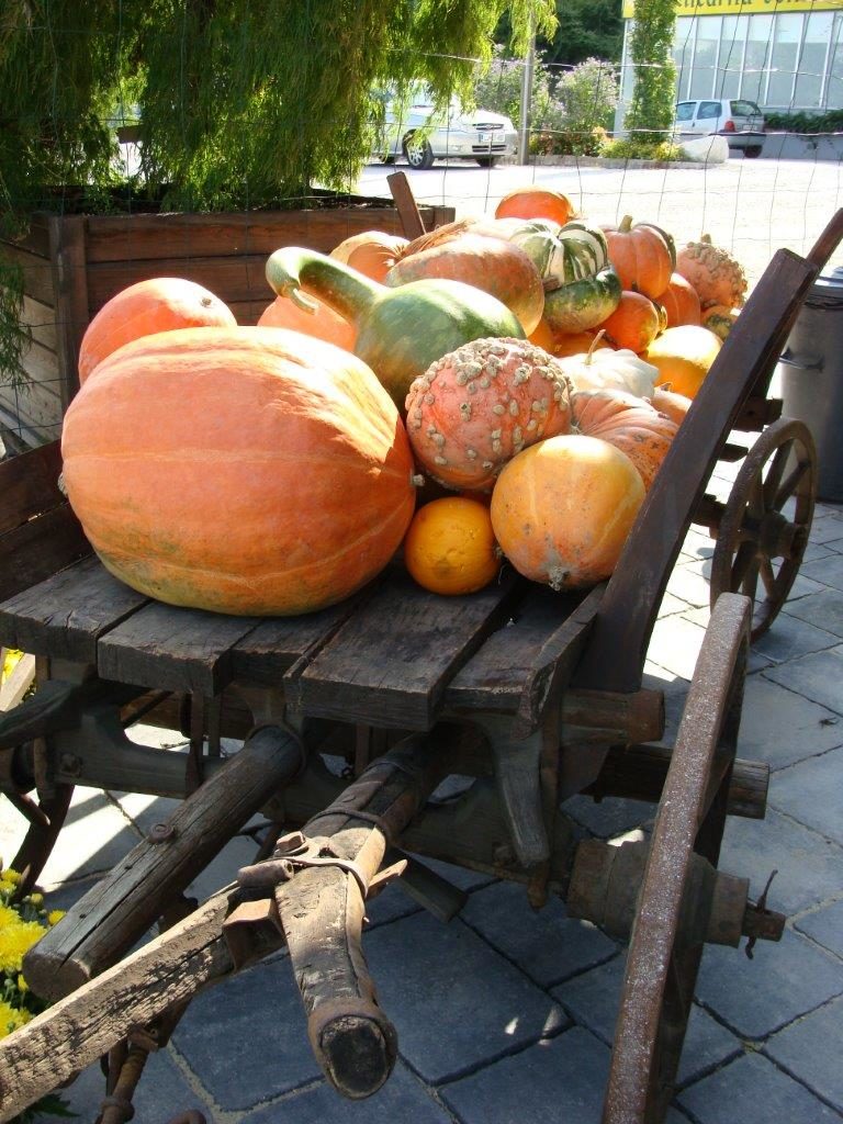 BUČKE KOT DEKORACIJA. Buče so izredno zanimiva dekoracija, ne glede kako jih aranžiramo. Damo jih enostavno v lepo košaro , ki jo postavimo na mizo ali klop. Na podeželju pogosto vidimo, da buče zložijo na lesen voz in ga postavijo pred hišo ali pa buče aranžirajo skupaj z rožami in raznimi jesenskimi okraski. Vse tja do zmrzali bodo take postavitve razveseljevale mimoidoče.