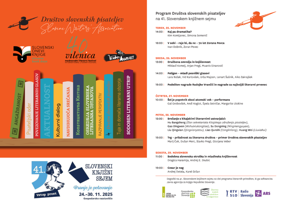 Dogodkovnik Društvo slovenskih pisateljev na 41. Slovenskem knjižnem sejmu 2025 Avtor: Ventilator besed - 23. novembra, 2025 0 68