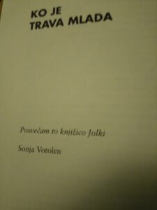Jooj,kako je protestirala, da bi bila zbirka posvečena njej. Ampak tedaj sem si drznila upreti njeni ostrosti. Zbirka je bila tik pred izidom, moj pogoj pa je bil: »V knjigi mora biti posvetilo tebi, Jolka, ali pa naj knjiga ne izide. Tako bom sporočila v Salerno«.