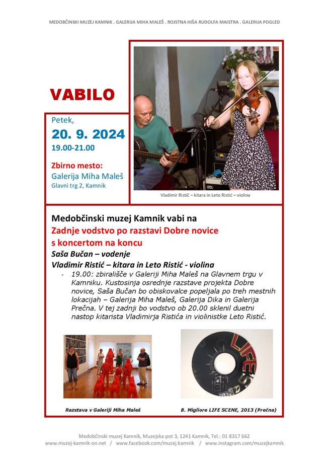 Dogodkovnik Javno vodstvo po razstavi Dobre novice s koncertom na koncu Avtor: Ventilator besed - 17. septembra, 2024 0 373