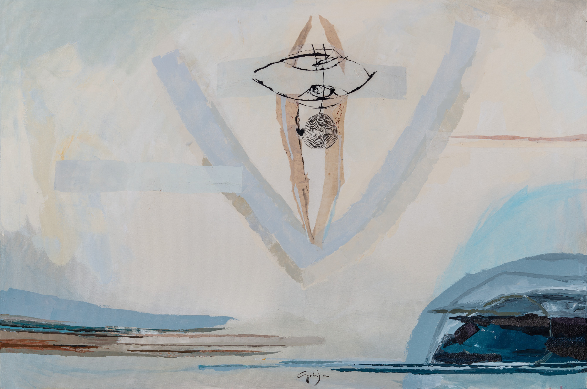 spodbujene oblike, simbole in vzorce. Da lahko govorimo o kontemplativnem tipu umetnice, opozarjajo omenjene horizontale. Prostorski koncepti kompozicij, ki so osrediščene z jedrom, imajo izrazito introvertiran značaj, kar lahko posredno povežemo s slikarkino osredotočenostjo na lastni notranji svet. Med osrednjimi ikonografskimi sestavinami je mandorla oziroma notranje oko. Na introspektivno zasnovo, ki jo slikarka želi vzpostaviti s konstelacijo likovnih postopkov, opozarja tudi prostorska globina (vtis, da naš pogled lahko seže v neskončnost), ki je najbolj intenzivna v sredini kompozicije – po slikarkinih besedah so zasnovane kot