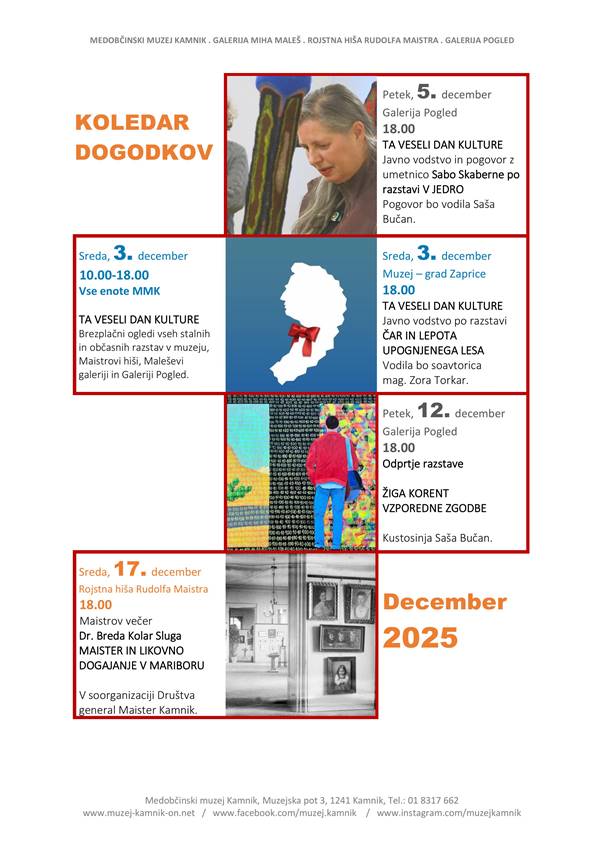 Dogodkovnik Koledar dogodkov za mesec december 2025 v Medobčinskem muzeju Kamnik Avtor: Ventilator besed - 3. decembra, 2025 0 65