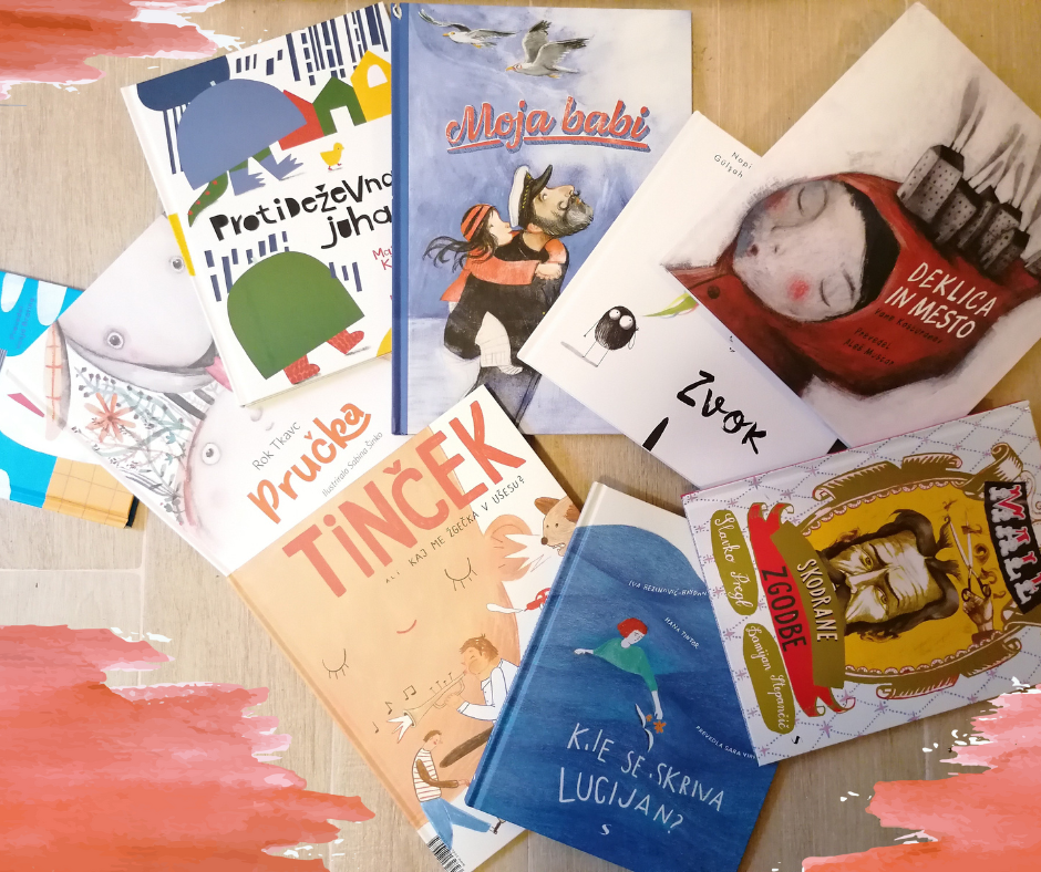 Ko pa smo ravno pri slikanicah, v lanskem letu je v knjižni zbirki Gugalnica izšlo devet čudovitih slikanic: Pručka Roka Tkavca, Kje se skriva Lucijan? Ive Bezinović-Haydon, Zvok Gülşah Yemen, Moja babi Jana De Kinderja, Ujel sem škrata Alberta Lota, Deklica in mesto Vaneta Kosturanova, Tinček Audre Baranauskaitė, Male skodrane zgodbe Slavka Pregla in Protideževna juha Majde Koren.