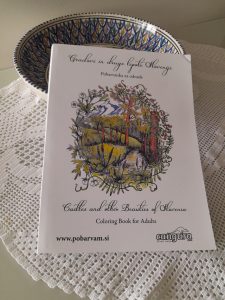 V pobarvanki za odrasle in mlajše lahko popotujemo od Julijskih Alp do Sredozemske obale s prelepimi cvetlicami, gradovi in čudovito pokrajino. Pred vsako ilustracijo v knjigi se nahaja kratek povzetek o sliki s prevodom v angleški jezik in kodo, s pomočjo katere lahko naročite dodatno pobarvanko tega motiva v večjih formatih.