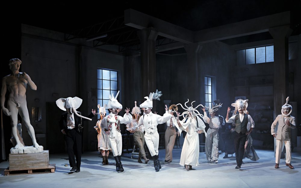 A ker gre kljub vsemu za komedijo, ki se norčuje iz ustaljenih vzorcev zaljubljencev in njihovih pretiranih čustev in ker je Shakespeare v svoja komična besedila vseeno vtkal dovolj pikrih opazk o človeški naravi, je torej na ustvarjalcih, da besedilo priredijo tako, da bo za današnji kontekst sprejemljivo. V tokratni uprizoritvi sta gospodar Leonato in njegov brat Antonio postala Leonata in Antonia, namesto duhovnika se pojavi sestra, namesto pisarja pisarka. Na ta način so vzpostavili dva svetova – svet moških, ki so odšli na vojno in se na začetku uprizoritve z nje vračajo, ter svet opolnomočenih žensk, ki domače mesto suvereno upravljajo v moški odsotnosti in jim njihov prihod nekako zmoti dušni mir.