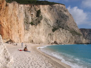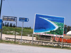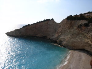 Potem pa naprej do mesta Vasilika, kjer smo zavili v Lidl in se oskrbeli s pivom, vinom, uzo, metakso, konzervami fižola (noč je bila glasna…).In še z ostalimi “oslarijami”…dodobra smo napolnili avto. Pa s klobasami, ki smo jih nato drugi večer pekli na obali Porto Katziki….Kako lepo je tam! V hudourniški strugi smo zakurili ogenj z naplavljenim lesom in se pogostili ter “ruknili” retsino. Črno nebo in zvezde, murnčki ali črički, ne vem natančno….šumenje morja, ja , to je bil “štimung”! Pa smo postavili šotor in šli spat, enkrat ob dveh.