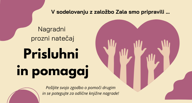 15.08.2023 smo pri Ventilatorju besed zaključili poetični natečaj na temo Prisluhni in pomagaj, ki smo ga organizirali z založbo Zala. Prejeli smo zanimive pesmi in veseli nas, da spodbujamo kreativnost. Kot vedno odločitev nagrajencev ni bila enostavna. Pa preverimo, kdo je prejel nagrado.