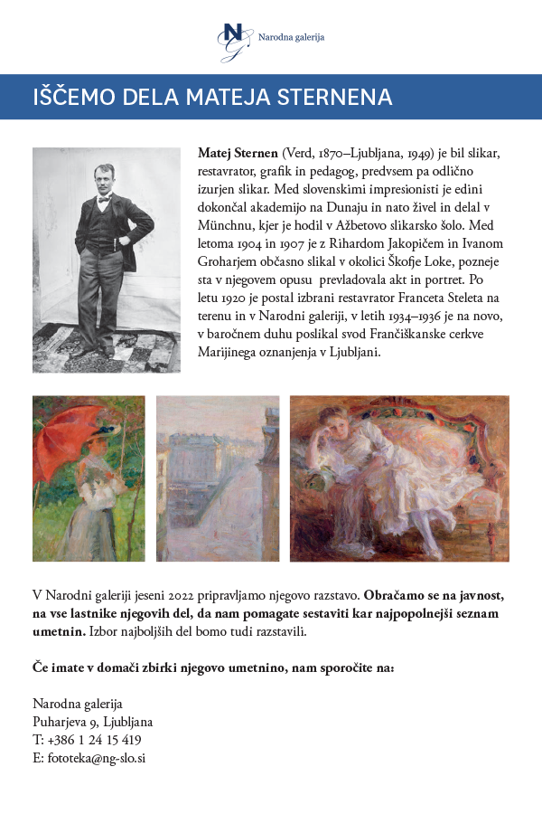 Dogodkovnik Narodna galerija – Iščemo dela Mateja Sternena Avtor: Ventilator besed - 6. februarja, 2022 0 418