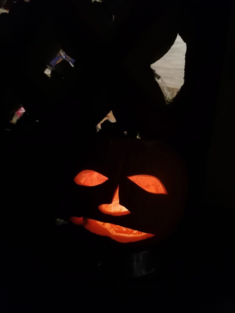Ustvarjalna Slovenija Noč čarovnic Avtor: Ventilator besed - 31. oktobra, 2022 0 582 Noč čarovnic praznujemo v družinskem krogu. Kot letni obred izpraznimo bučo, da postane votla in ji izrežemo obraz. Tako izgleda letošnja: