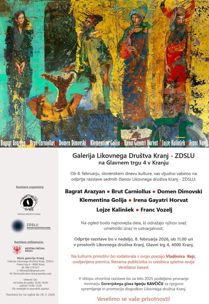 Dogodkovnik Odprtje razstave v Galeriji likovnega društva Kranj Avtor: Ventilator besed - 4. februarja, 2026 0 63