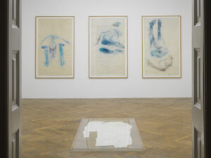 Adriena Šimotová se tokrat v Ljubljani predstavlja z razstavo del na papirju. Zanje lahko preprosto rečemo, da so lepa in poetična hkrati. S kolažnim plastenjem s frotažem poslikanega svilnatega papirja, ki s svojo rahlo zmečkano strukturo deluje krhko in ustvarja taktilno napetost, osredotočenost na telo, dotik in duhovnost, umetnica ohranja zanimanje za ontološka vprašanja človekovega bitja, polje komunikacije, dialoga in prisotnost drugega. Papir je zanjo najbolj občutljiv medij, ki lahko zapisuje proces ustvarjanja; razumela ga je tudi kot prispodobo naše življenjske negotovosti.