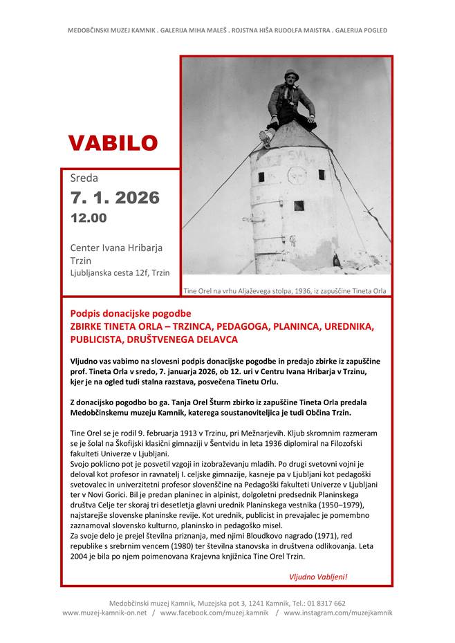 Dogodkovnik Podpis donacijske pogodbe za zbirko Tineta Orla Avtor: Ventilator besed - 6. januarja, 2026 0 144