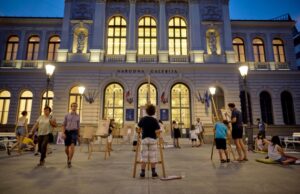 Risanje na prostem pred Narodno galerijo na Cankarjevi cesti