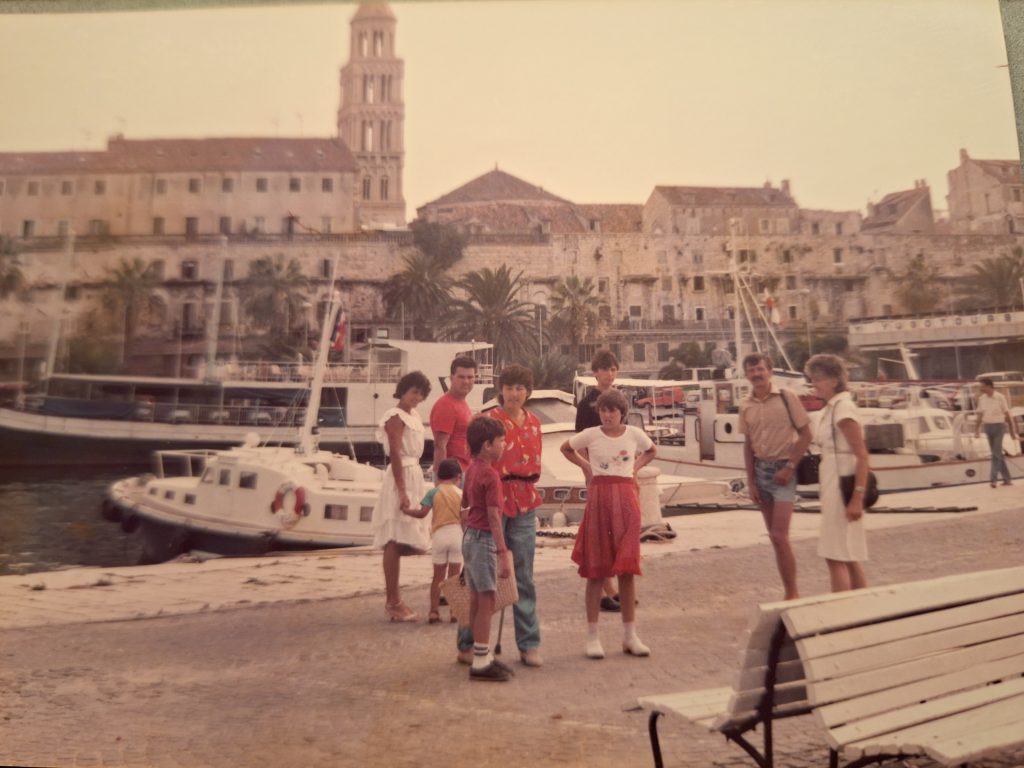 Dotik mamine poročne oblekeAvtentična karibska legenda (mešanica finega ruma in izbranih začimb) postrežena iz vintage kozarcev BadelIz fotoalbuma – moji prvi koraki v Splitu, ne vedoč, da bom nekega dne izbrala to mesto za bivanje (v rumeni majici)Kavni servis moje pokojne babice, neuporabljen, s certifikatom ročne izdelave in kakovosti originalnega karlovarskega porcelana, okrašen s 24-karatnim zlatom.V babičinem suknjiču v hotelu Slon, Ljubljana.Pogled na mesto Ljubljana skozi starinske ustavljene ročne ure … moj rojstni kraj.