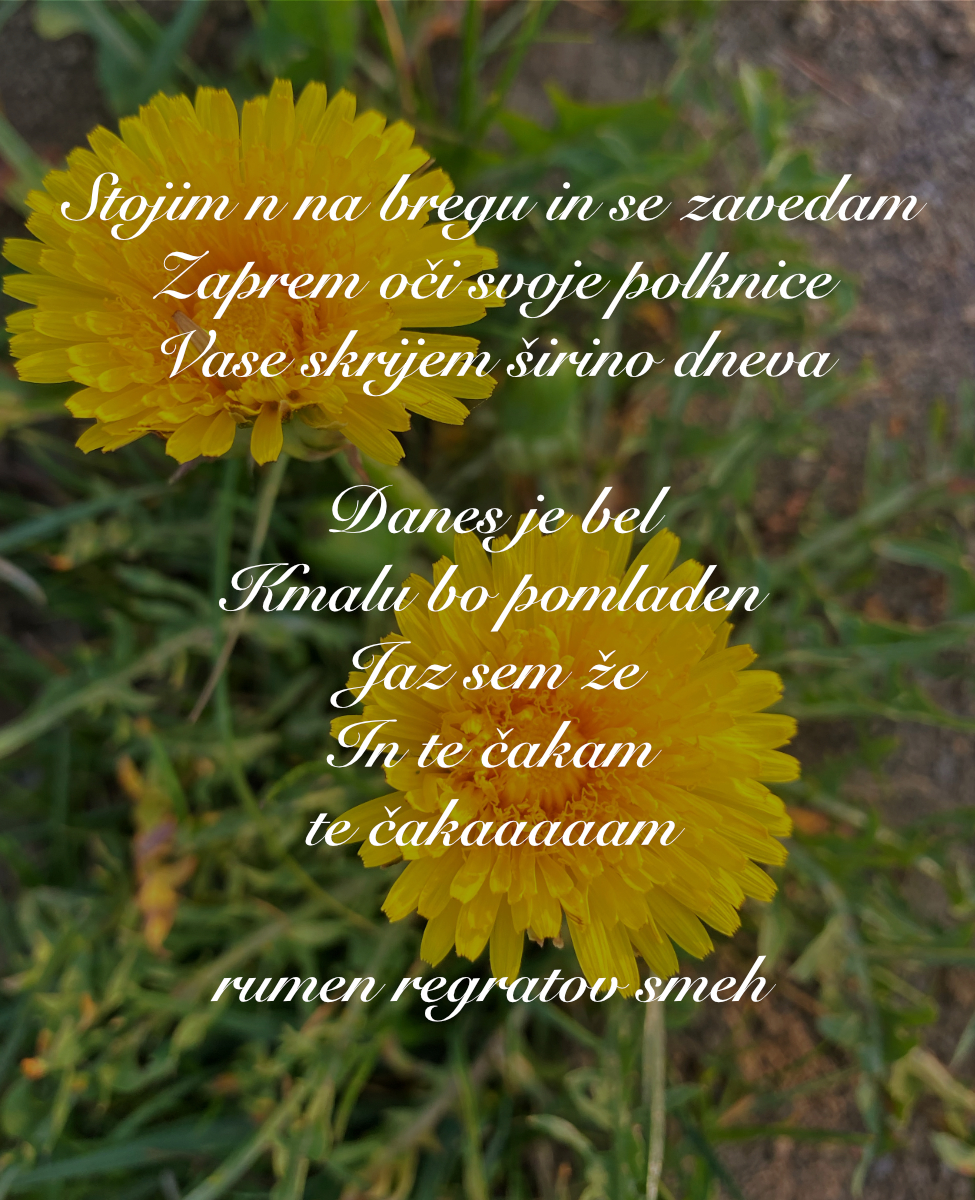 KulturaPoezija Sonja Votolen: Regratov objem Avtor: Sonja Votolen - 15. marca, 2021 0 406 Napisala: Sonja Votolen Avtorica fotografije: Mojca Fingušt Rup