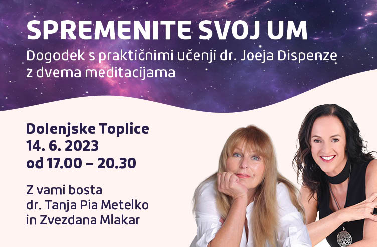 Z vami bosta dr. Tanja Pia Metelko, trenerka za osebno in poslovno rast, ki jo je dr. Joe Dispenza osebno izbral in usposobil, ter voditeljica večera, neutrudljiva ustvarjalka boljšega sveta Zvezdana Mlakar.