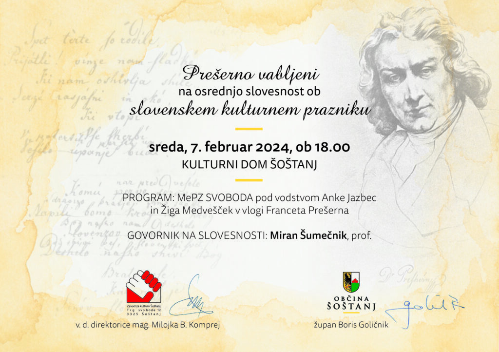 Kultura Vabilo na osrednjo slovesnost ob slovenskem kulturnem prazniku Avtor: Ventilator besed - 6. februarja, 2024 0 627