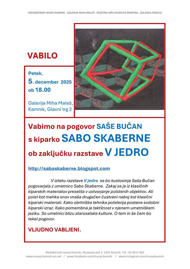 Dogodkovnik Vabilo na pogovor s kiparko Sabo Skaberne Avtor: Ventilator besed - 3. decembra, 2025 0 63