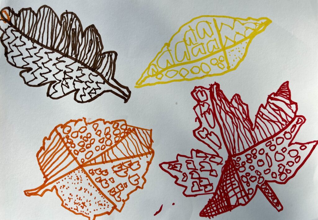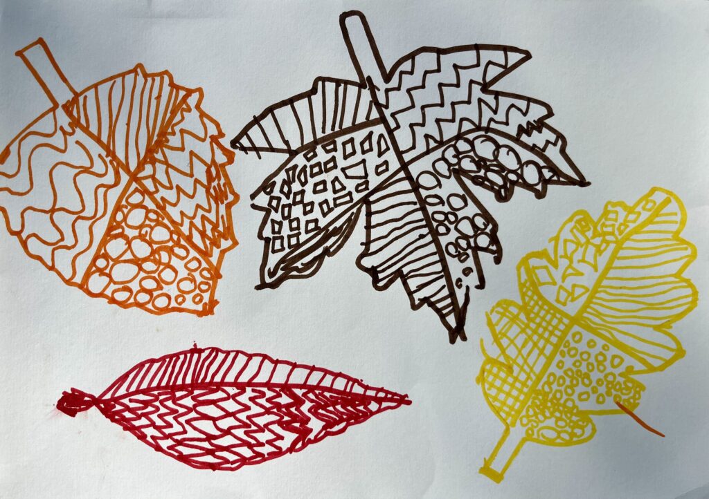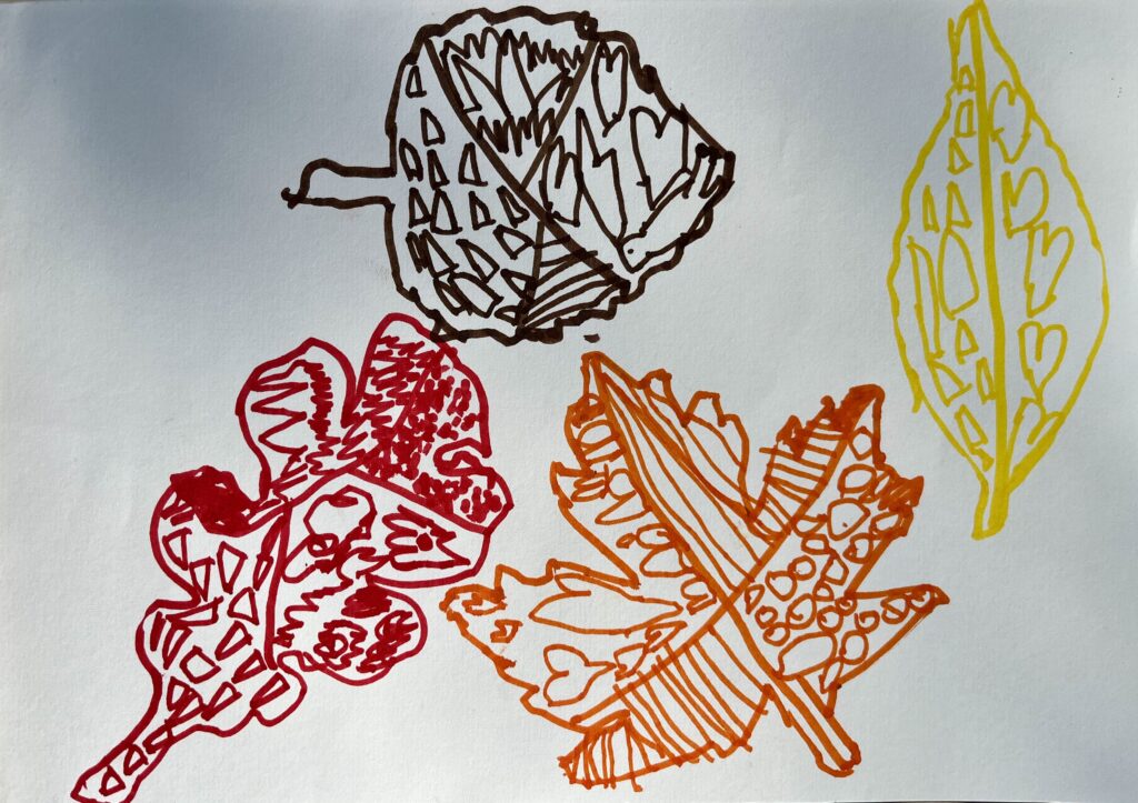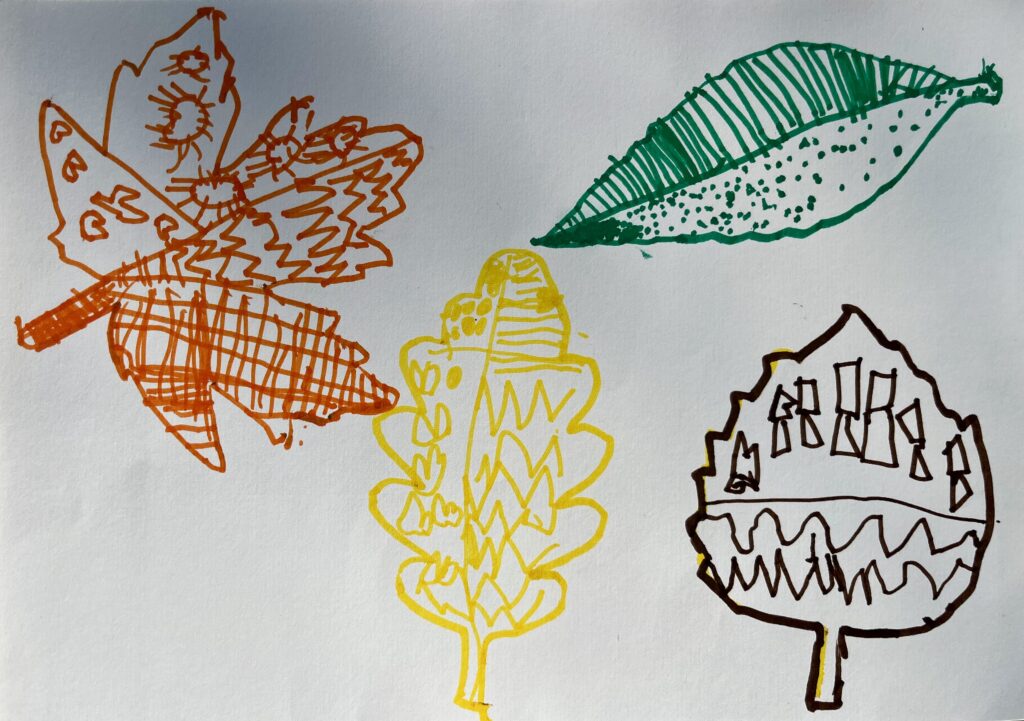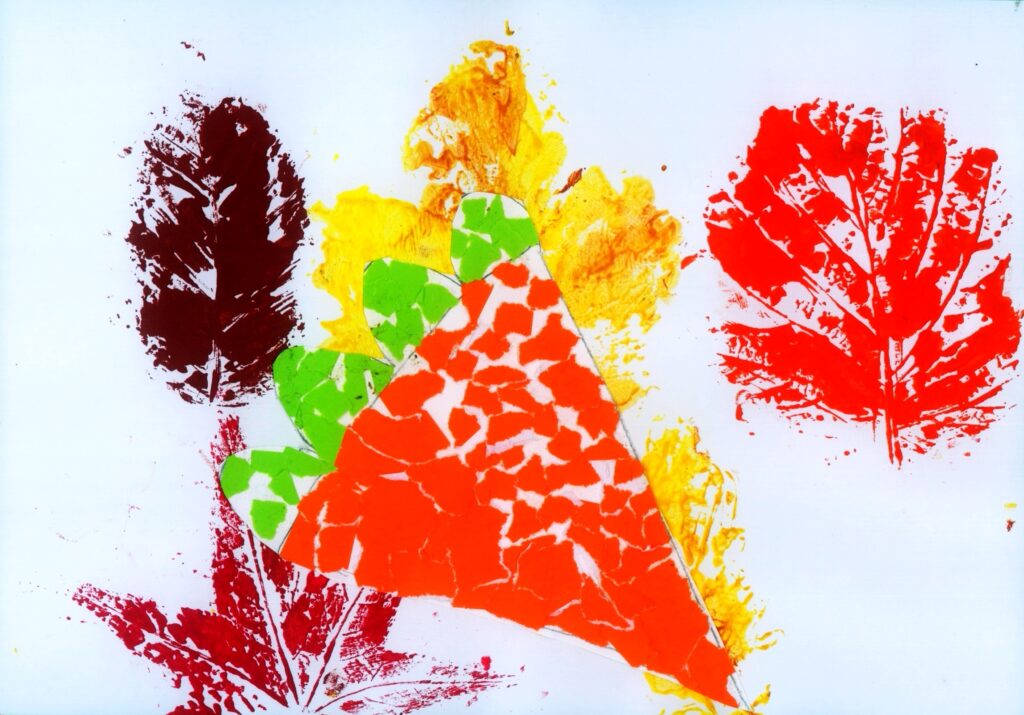 21. – 24. prispevek. Učenci 1. razreda OŠ Šmihel, Podružnice Birčna vas so opazovali gozd v jeseni. V gozdu so nabrali različne liste, jih razvrščali in jih nato v razredu odtiskovali. Zatem pa so ustvarili še jesenske plodove v tehniki kolaž. Pri tem so urili vztrajnost in natančnost.