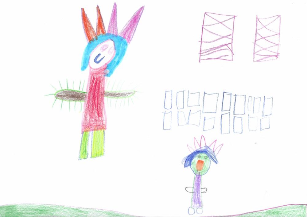Ko sem hčerki Viti prebrala vaš nagovor in vprašanja, mi je rekla, da ji je lepo, ko pomaga svoji sošolki v vrtcu: Sošolka se zelo hitro razjezi in v jezi koga ugrizne ali udari. Kadar opazi, da je sošolka jezna, gre do nje in jo objame, da se pomiri. ❤️ Tako je narisala dogodek iz vrtca: sošolko, ki se je razjezila in sebe, ko ji ponudi objem.