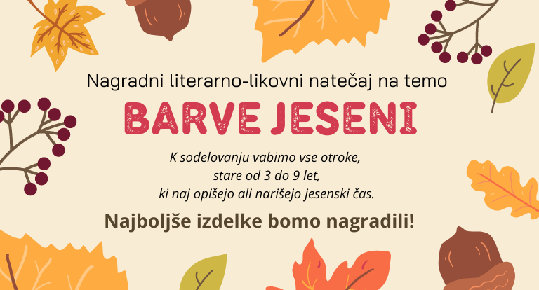 Ventilator besed, revija za kulturo, vzgojo in izobraževanje www.ventilatorbesed.com v sodelovanju z Revijo Zmajček, organizira Nagradni likovno literarni natečaj na temo: BARVE JESENI, in sicer v obdobju od 1.9.2022 do 31.10.2022.