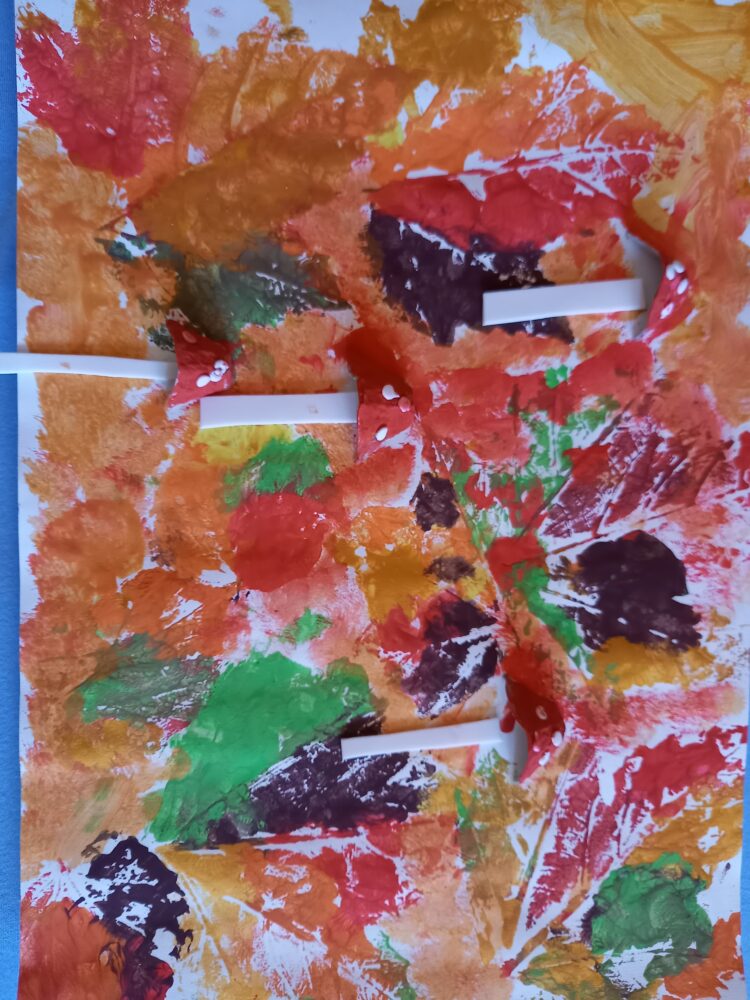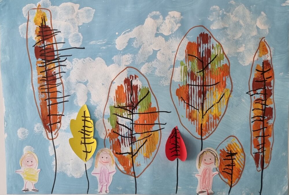 143. – 154. prispevki otrok iz Zasebnega vrtca Modrinček d.o.o. skupine Marsovčki. Tehnika je tiskanje drevesnih listov z akrilno barvo in čopičem in risanje s flomastri. Mentorica: vzgojiteljica Petra Štih.