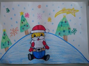 13. Adam Marjanovič, 7 let – Božiček Likovna tehnika – flomastri Mentorica -Majda Kolenc