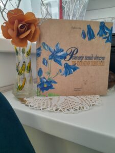 Njeno poezijo poslikuje modrocvetno rastlinje: lan, spominčice, ostrožnik, travniška krvomočnica, navadni zimzelen, plavica, resasti svišč, navadna vijolica, primorska možina, razprostrta zvončica, … to je likovno delo akademske slikarke Marije Prelog, ki skupaj z Vladimiro Rejc ustvari lirsko- slikovno slikovito pesnjenje.