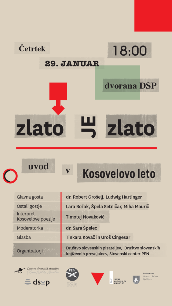 Dogodkovnik Zlato je zlato: Uvod v Kosovelovo leto, 29. 1. 2026 ob 18:00 Avtor: Ventilator besed - 27. januarja, 2026 0 108